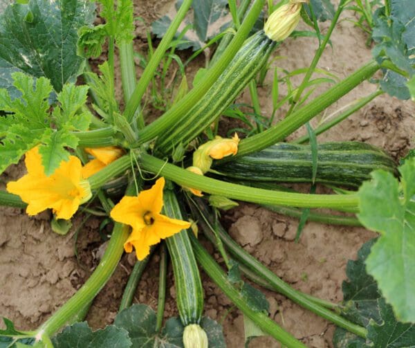 Regelmatig oogsten stimuleert de vruchtzetting en behoudt de optimale kwaliteit van de courgettes.