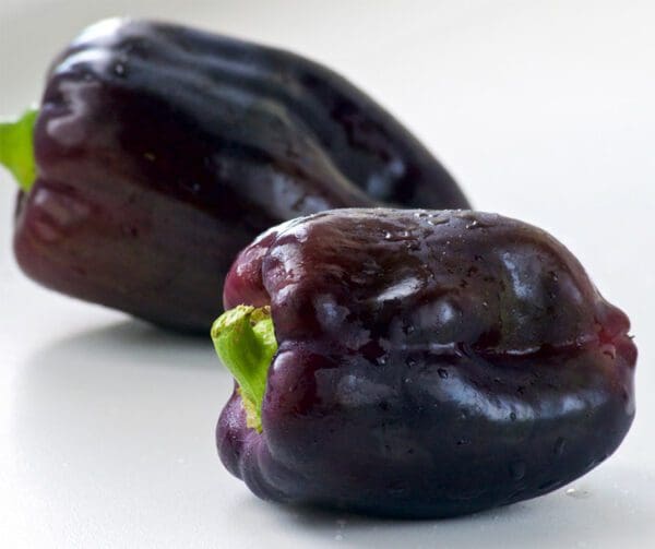 Buitenpaprika. Dunwandige, middelgrote paprika. De vruchten groeien rechtop aan de plant. Aanvankelijk zwart, rijpen ze tot auberginepaars en vervolgens rood.