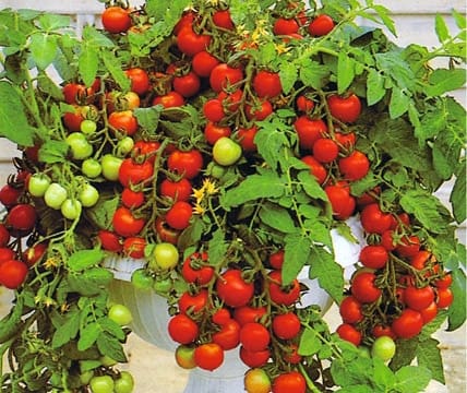 Maskotka is a compact, very well-branched red cherry tomato that is ideal for hanging baskets, balcony boxes and larger pots. The red cherry-sized fruits are produced in large numbers and are excellent snacks, straight from the plant to the mouth. A very decorative alternative to hanging baskets.