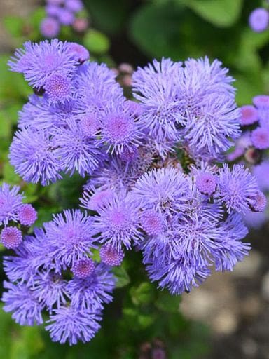 Ageratum ‘Florist Blue’ heeft stevige stelen en intens blauwe bloemen. Uitstekend geschikt als snijbloem en lang houdbaar in de vaas.
