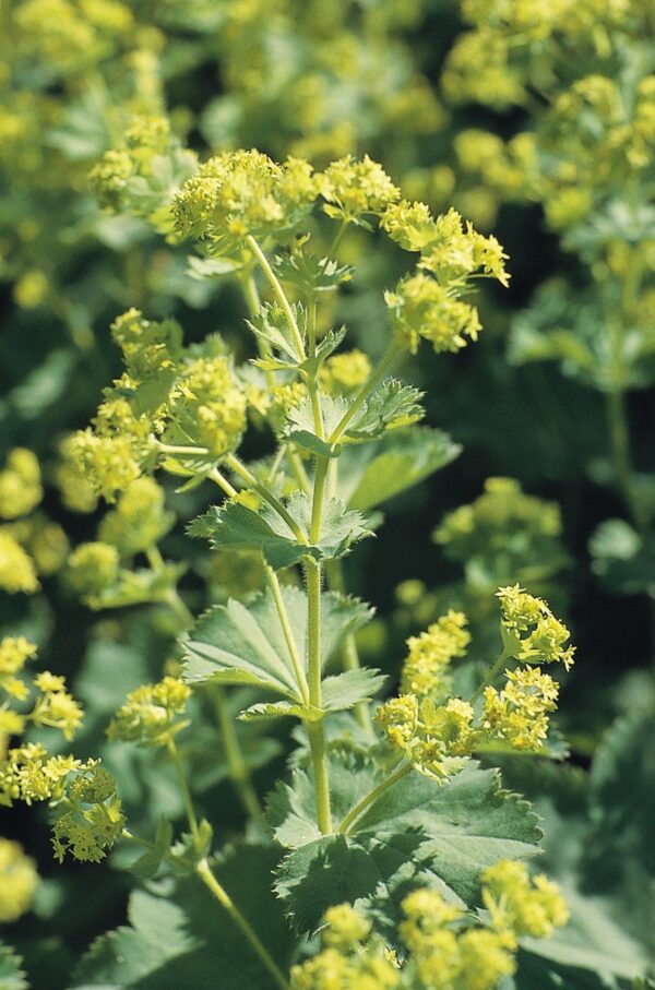 Weelderige vaste plant met zachte, gekartelde bladeren en delicate geelgroene bloemen. Ideaal voor borders, bodembedekking en als snijbloem.