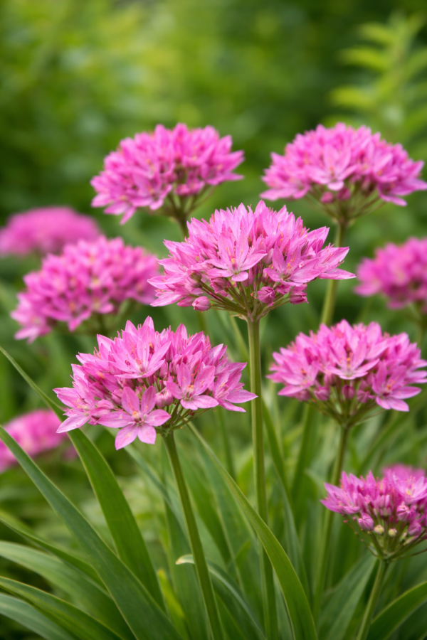 Allium oreophilum Baltimore is een bijzonder opvallende sierui die direct de aandacht trekt met zijn grote, purper-roze bloemschermen. De bloemen hebben subtiele, donkerdere middenaders die extra diepte en contrast geven, waardoor deze Allium een spectaculair accent vormt in elke tuin. Dankzij zijn unieke kleur en opvallende bloemstructuur is deze variëteit ideaal voor sierborders, rotstuinen, bloembedden en als snijbloem.