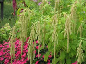 In tegenstelling tot het meer traditionele rood van andere Amaranthus caudatus-variëteiten, onderscheidt de variëteit ‘Mira’ zich door haar tweekleurige groen met rode schakeringen, wat een delicate en romantische uitstraling aan de plant geeft. Een visueel verbluffende plant, bewonderd om haar lange, hangende bloemtrossen.