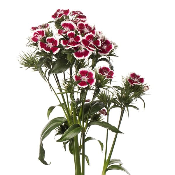 Dianthus Barbienne Red White - гэта двухколерны гатунак з серыі Dianthus Barbienne з чырвонай сэрцавінай і белымі краямі кветак.