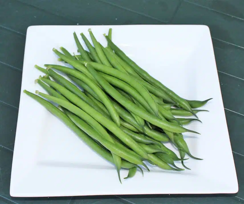 Цёмна-зялёная, вельмі дробная фасоля без нітак з выдатным густам.