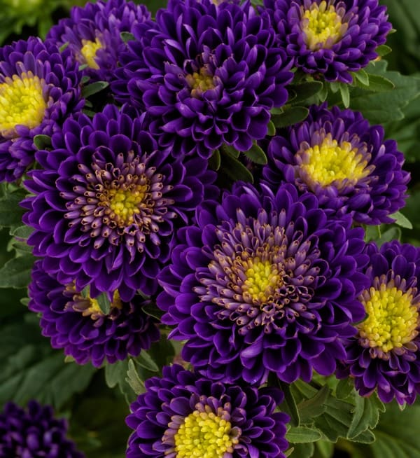 Серыя Callistephus Matsumoto - гэта раннеквітнеючы гатунак з паўмахровымі кветкамі і жоўтай сярэдзінай на моцных вертыкальных сцеблах.