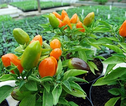 Фокста — вельмі дэкаратыўны гатунак чылі з вертыкальнымі аранжавымі пладамі.
