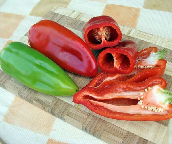 Трывалыя завостраныя перцы з мясістымі пладамі даўжынёй да 15 см, якія мяняюць колер з зялёнага на чырвоны.
