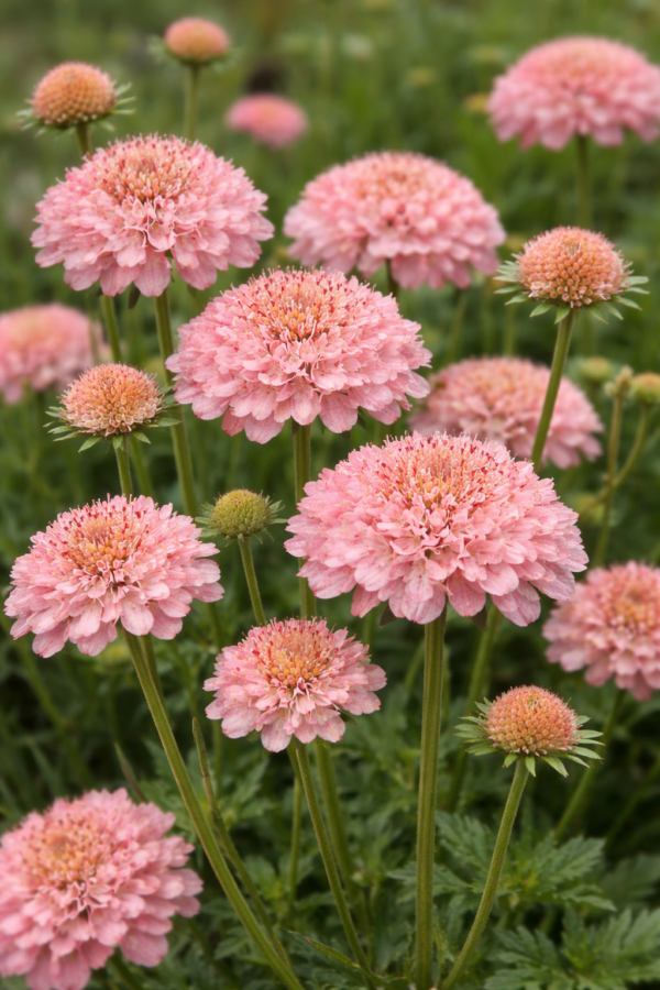 Скабіёза атрапурпурная (Scabiosa atropurpurea QIS® Salmon Pink), таксама вядомая як скабіёза «Самолева-ружовая», — гэта вытанчаная, багатая летняя расліна, якая ўпрыгожвае сады, бардзюры і гаршкі мяккімі ласосева-ружовымі кветкамі. Дзякуючы кампактнаму, магутнаму росту і працягламу цвіценню, гэты гатунак ідэальна падыходзіць для садоўнікаў, якія жадаюць стварыць элегантны і рамантычны акцэнт у сваім летнім садзе. Далікатны колер ласосева-ружовага выдатна спалучаецца з белымі, фіялетавымі і насычанымі ружовымі летнімі кветкамі.