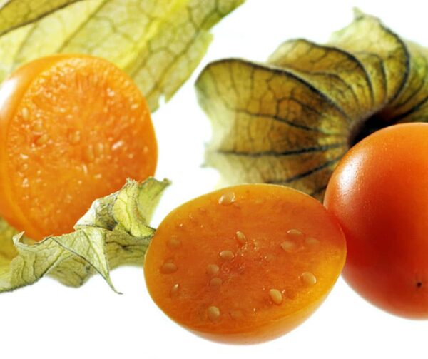 Ягады памерам з вішню, залаціста-жоўтага колеру.