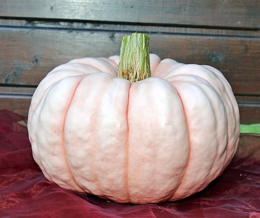 Грубыя плады, якія важаць каля 3-5 кг, маюць моцную рабрыстую паверхню і блішчаць ружовым адценнем, раней невядомым у гарбузоў.