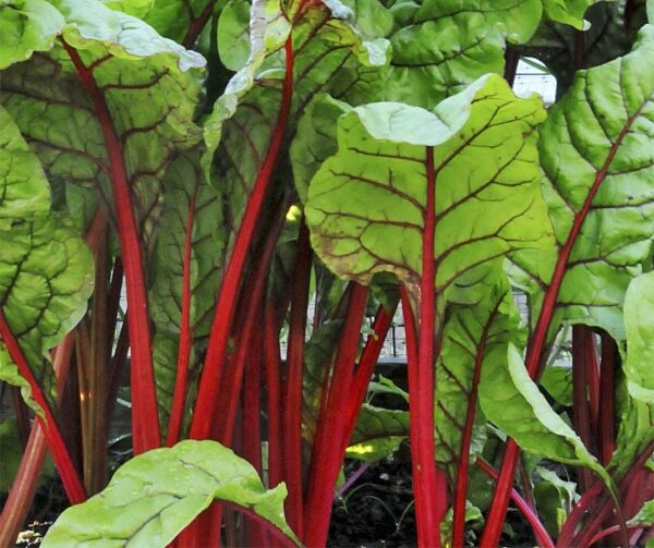 Robuuste, roodstengel-snijbiet. De stelen blijven rood, zelfs na het koken.