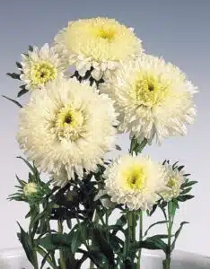 Callistephus, beter bekend als Chinese asters, zijn een waardevolle toevoeging aan iedere snijbloementuin en bieden een breed scala aan kleuren en vormen die bloemstukken verfraaien. Callistephus chinensis is de belangrijkste soort voor snijbloemen en produceert margrietachtige bloemen met een centraal schijfje omringd door kleurrijke straalbloemen, verkrijgbaar als enkele, halfdubbele of dubbele bloemen.