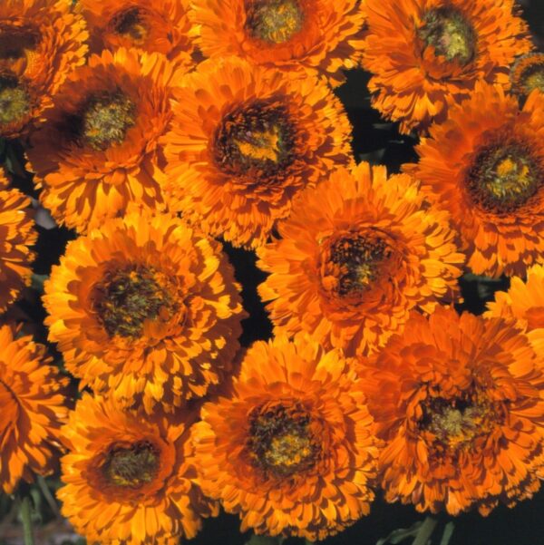 Calendula officinalis ‘Greenheart’ is een eenjarige goudsbloem met opvallende, grote, helderoranje bloemen met groen getinte centra. Zeer geschikt als snijbloem, maar ook decoratief in borders.