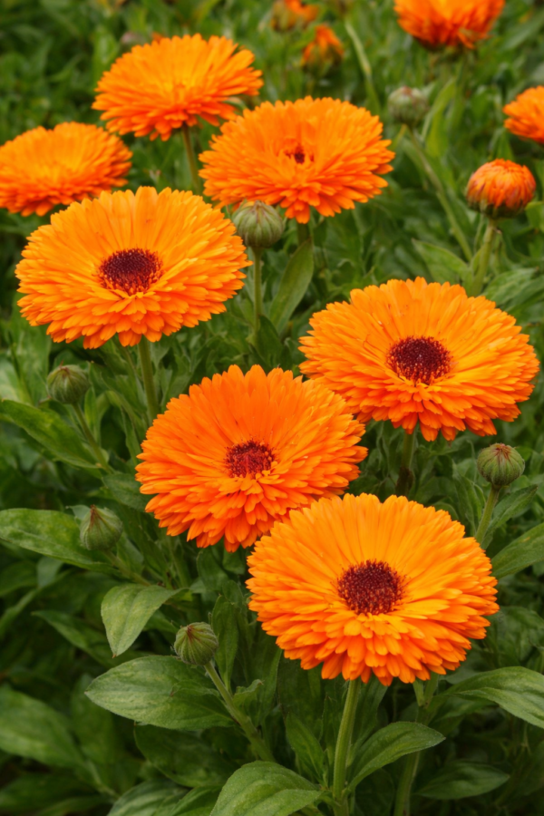 Calendula officinalis ‘Orange King’ is een prachtige, dubbelbloemige goudsbloem die bekendstaat om zijn diepe oranje kleur en rijke bloei. Deze eenjarige plant is ideaal voor tuiniers die op zoek zijn naar een opvallende, decoratieve plant voor borders, potten of snijbloemenproductie. ‘Orange King’ combineert een indrukwekkende sierwaarde met een gemakkelijke teelt, waardoor het een favoriet is bij zowel hobbytuinders als professionele kwekers.