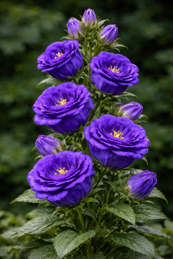Wat de Campanula medium double Dark Blue zo geliefd maakt, is de unieke bloemvorm. In tegenstelling tot enkelbloemige Campanula’s heeft deze variëteit meerdere lagen bloemblaadjes, waardoor de bloem bijna gesloten en bolvormig oogt. De kleur is een diep donkerblauw tot violetblauw, een tint die prachtig contrasteert met het frisse groen van het blad en andere bloeiende planten in de tuin. Deze intense kleur blijft ook bij zonnig weer mooi behouden.