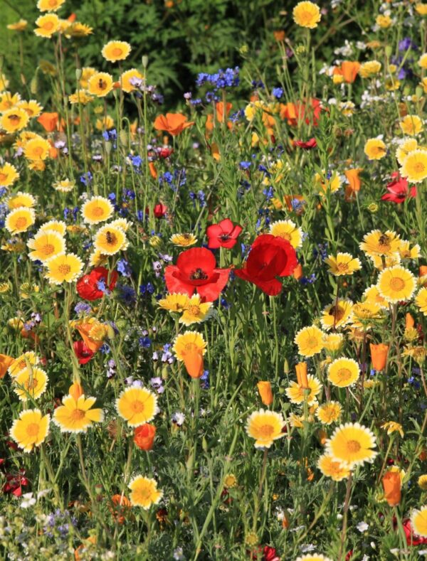 Samenstelling: 16 eenjarige bloemen, waaronder Clarkia unguiculata, Papaver rhoeas, dwerg-Coreopsis grandiflora, Eschscholzia californica, Gypsophila elegans, Layia platyglossa, Linum rubrum…