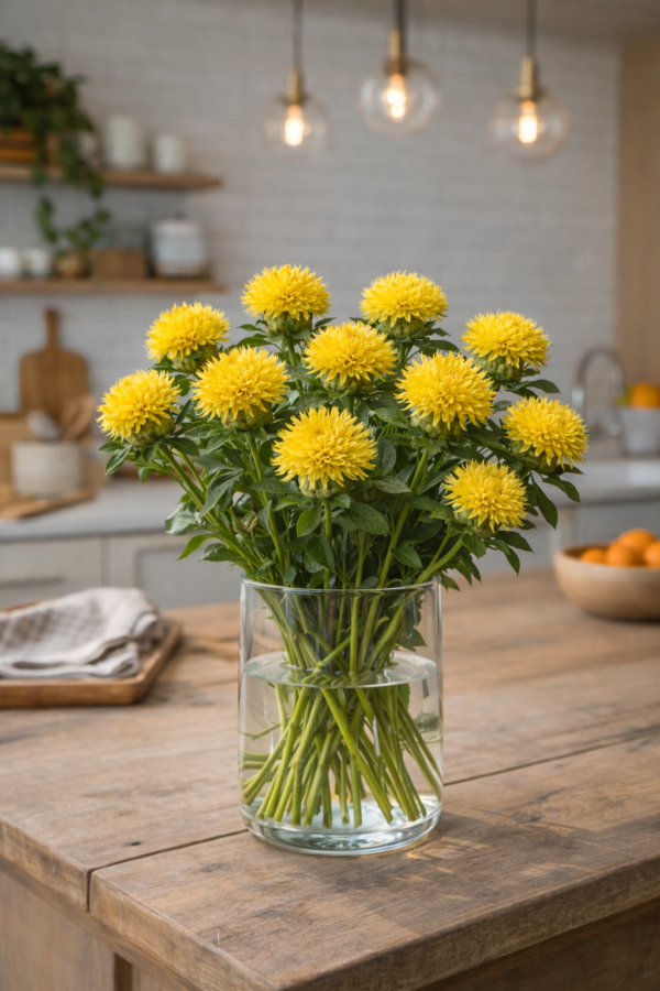 Kleur: felgeel, dat energie en licht toevoegt aan elk arrangement.