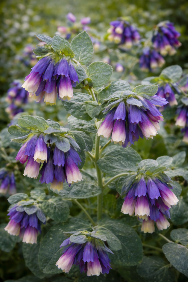 Prachtige zilverblauwgroene bladeren en mooie klokvormige paarse bloemen, die een magneet zijn voor bijen. Het is ook een snijbloem.