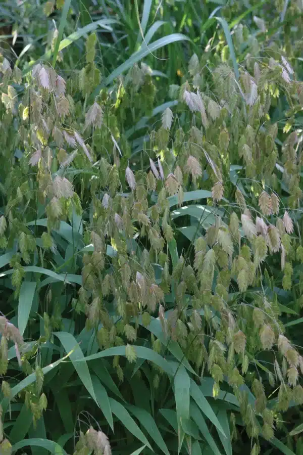 Zeer gewaardeerd om zijn unieke, platte, hangende bloei- of zaadaren die in de wind glinsteren. Deze aren verschijnen eerst groen en kleuren in de herfst goud- of bronskleurig, waardoor ze een opvallende aanwinst zijn voor tuinen en natuurlijke landschappen.