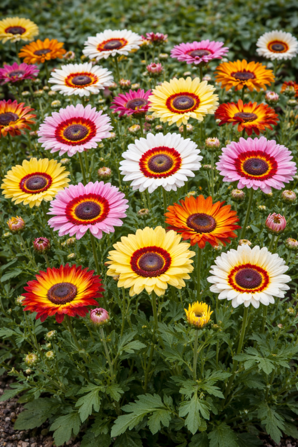 Dankzij zijn kleurige bloemen en compacte groei is Chrysanthemum carinatum ‘Rainbow Mixture’ perfect voor: