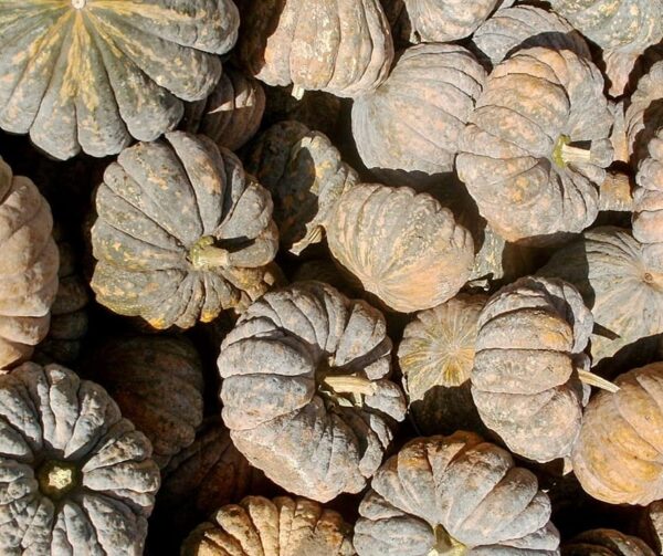 Zeer aantrekkelijk met zijn platte, ronde vorm en spikkels. Volrijp kleurt hij mooi terracotta en weegt ongeveer 1–3 kg. Zeer goed te bewaren.