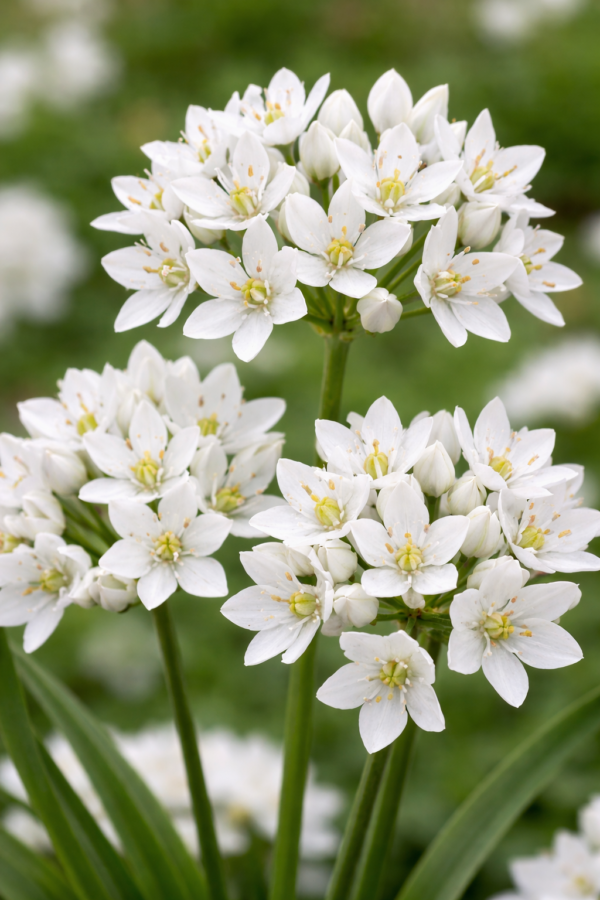 Allium cowanii ist eine robuste, pflegeleichte Pflanze, die in gut durchlässigem Gartenboden prächtig gedeiht. Zierlauch eignet sich sowohl für Beete als auch für Steingärten und breitet sich allmählich aus, wodurch ein bezaubernder Teppich aus weißen Blüten entsteht.