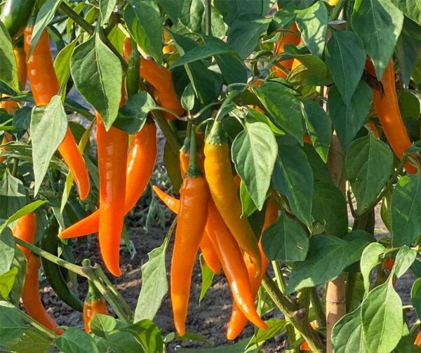 Die Früchte dieser Chilisorte sind lang, schlank und typischerweise cayennepfefferförmig. Sie verfärben sich von Grün zu einem leuchtenden Orange und verleihen der Pflanze so ein auffälliges und dekoratives Aussehen. Ihr Geschmack ist mittelscharf, wodurch sich diese Chili für eine Vielzahl von Gerichten eignet. Sie verleiht Speisen Schärfe, ohne zu dominant zu sein, und ist perfekt für Wokgerichte, Saucen, Marinaden oder zum Trocknen.