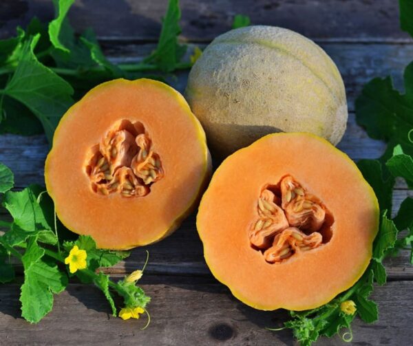Eine widerstandsfähige Cantaloupe-Melone der frühen Saison. Das Fruchtfleisch ist süß, aromatisch und hat eine schöne orange Farbe.