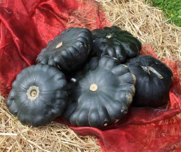 Green Saucer F1 ist eine dunkelgrüne Patisson, etwa 15–20 cm groß. Die Früchte sind wohlgeformt und dekorativ.
