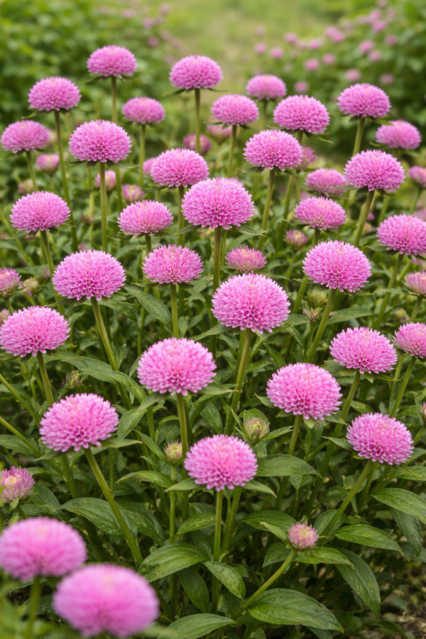 Kugelförmige Blütenköpfe – charakteristisch für Globe Amaranth, dekorativ und nachhaltig