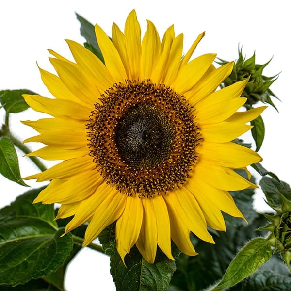 Helianthus Choco Sun ist eine kompakte Topfsonnenblume mit verzweigtem Wuchs.