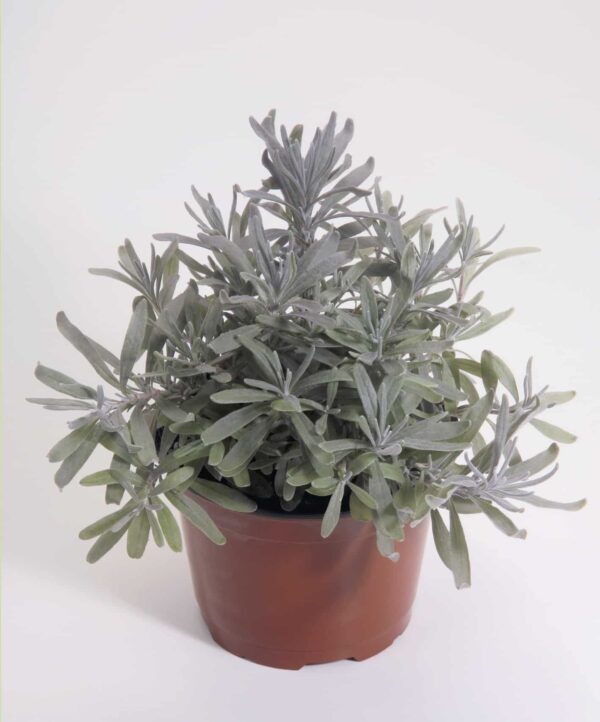 'Munstead' wächst kompakt und buschig und bildet eine ordentliche, runde Form – ideal für Beeteinfassungen, Rabatten und Töpfe. Die schmalen, silbrig-grünen Blätter sind 2,5–5 cm lang und leicht behaart, was der Pflanze ein elegantes Aussehen verleiht.