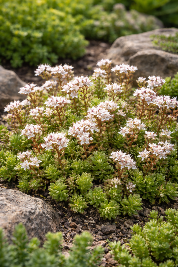 Dank seines kompakten Wuchses und seiner weißen Blüten ist Sedum album in fast jedem Garten oder Topf ein Blickfang.