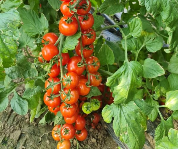 Ertragreiche, große rote Cocktailtomate, ca. 40 Gramm schwer, sehr aromatisch. Früh, multiresistent, wüchsig und ertragreich.