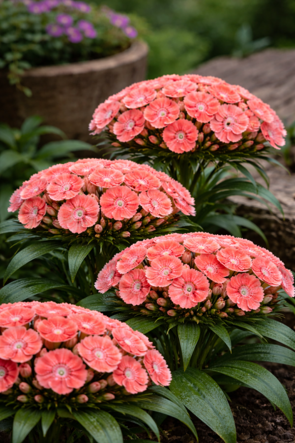 Dianthus barbatus QIS® Etournelle Salmon Shades is een hoogwaardige, tweejarige duizendschoon die speciaal ontwikkeld is voor professionele snijbloementeelt. Deze variëteit behoort tot de bekende Etournelle-serie, die bekendstaat om extra lange stelen, uniforme bloei en verbeterde prestaties. De zachte zalmtinten van de bloemen geven een warme uitstraling, waardoor deze duizendschoon zowel in boeketten als in borders en pluktuinen uitstekend tot zijn recht komt.