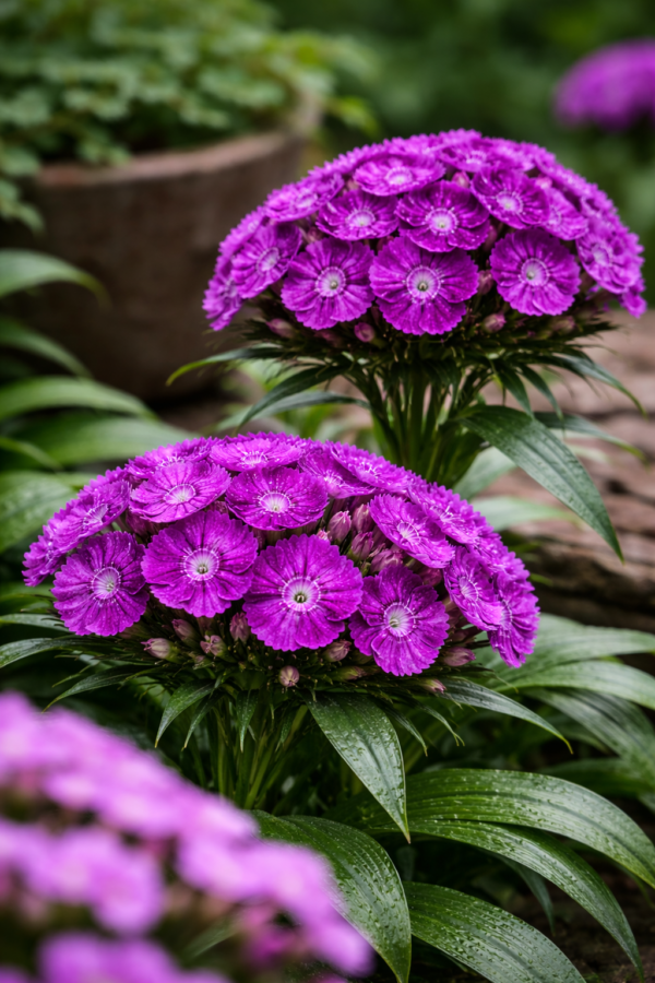 Dianthus barbatus QIS® Etournelle Purple is een hoogwaardige, tweejarige duizendschoon die speciaal is ontwikkeld voor professionele snijbloementeelt. Deze variëteit behoort tot de gerenommeerde Etournelle-serie, bekend om extra lange stelen, uniforme bloei en verbeterde prestaties. De intense paarse bloemen combineren een rijke kleur met een aangename geur, waardoor ze zowel in de tuin als in boeketten en arrangementen uitstekend tot hun recht komen.
