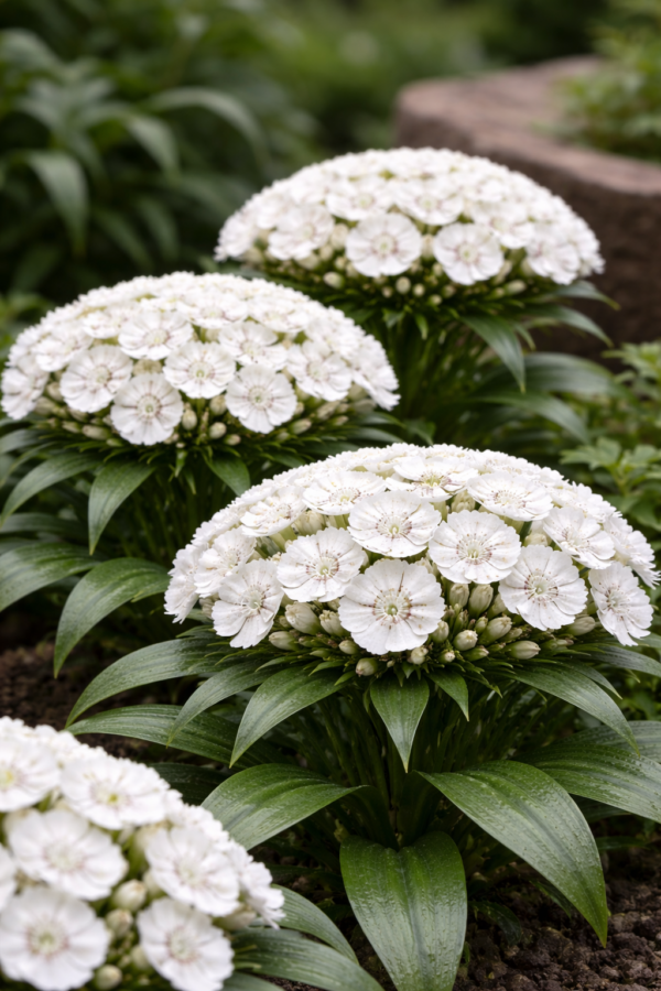 Dianthus barbatus QIS® Etournelle White is een hoogwaardige, tweejarige duizendschoon die speciaal ontwikkeld is voor professionele snijbloementeelt. Deze variëteit behoort tot de gerenommeerde Etournelle-serie, die bekendstaat om extra lange stelen, uniforme bloei en verbeterde prestaties. De zuiver witte bloemen combineren elegantie met een aangename geur, waardoor ze zowel in boeketten, pluktuinen als borders uitstekend tot hun recht komen.