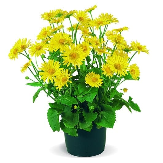 Vormt solitaire, goudgele margrietachtige bloemhoofden, 2,5–5 cm in doorsnede, op slanke stelen in het midden en late voorjaar.
