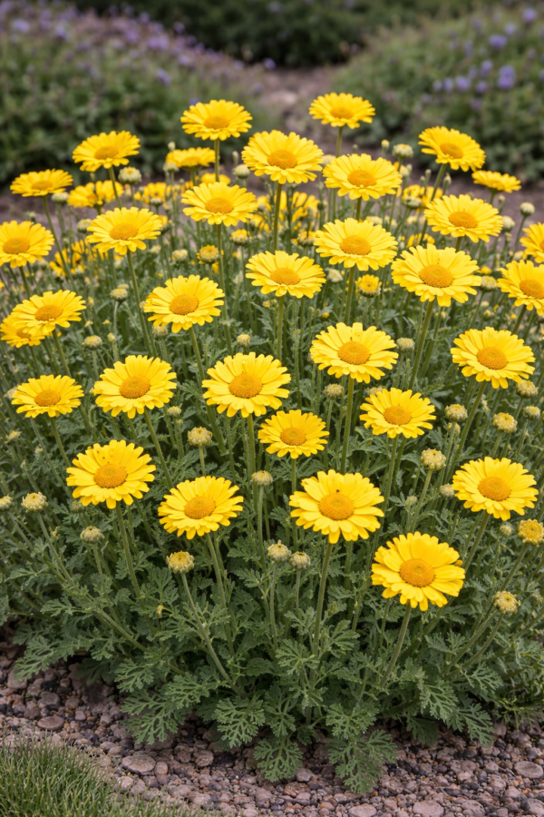 The Anthemis 'Kelwayi' brings the warm glow of the Mediterranean sun to any garden. Whether you choose a rustic border, a modern rock garden, or a naturalistic planting, this yellow chamomile creates a cheerful, summery look that will shine for months.