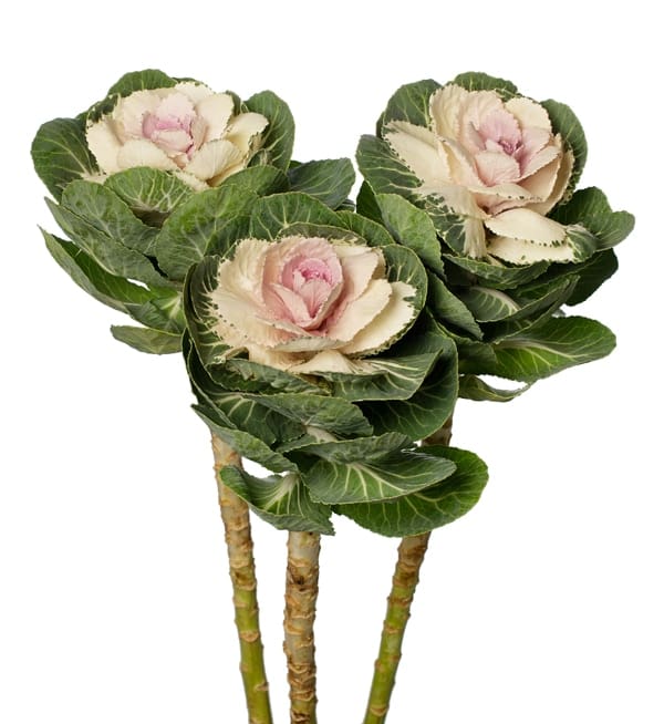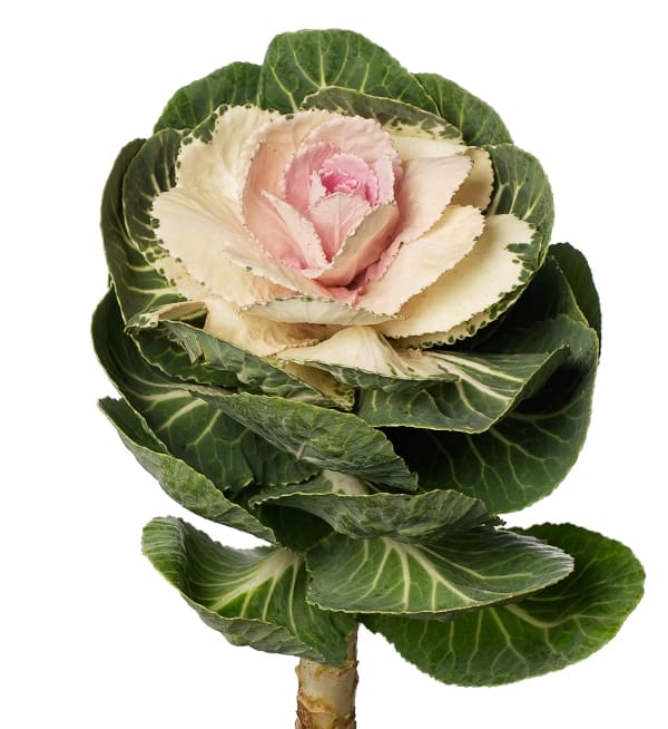 Brassica Empire Selena has white leaves with a fresh green outer layer, later developing a light pink blush at the center. The leaves are round, and Selena's color changes at a moderate pace.