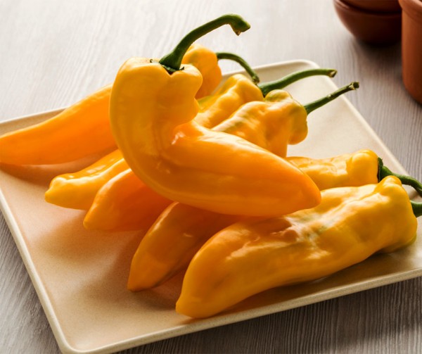 A vigorous and early-ripening pointed pepper distinguished by its bright yellow color, excellent flavor, and reliable growth. This hybrid variety is ideal for gardeners looking for a productive and flavorful pepper that performs well both in the greenhouse and in open ground.