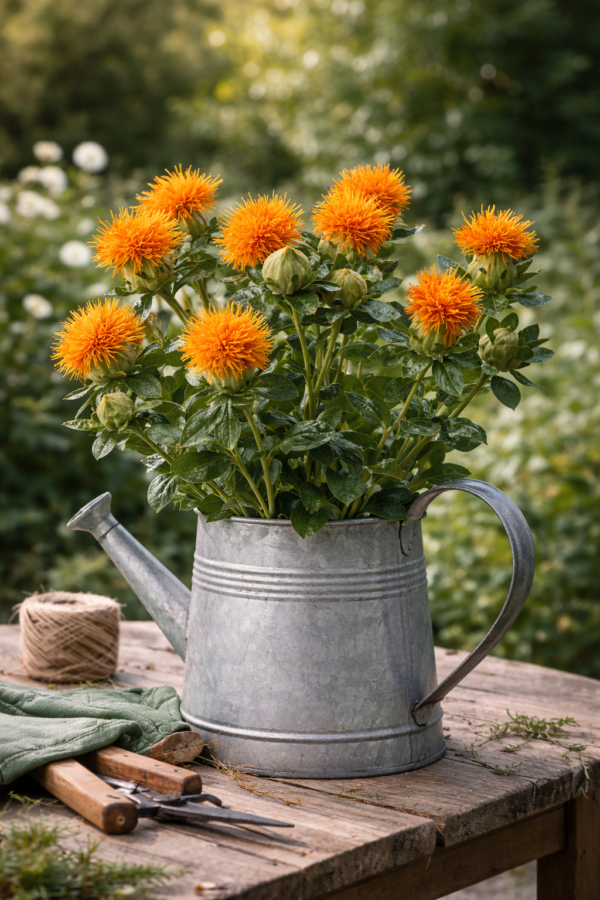 These qualities make Carthamus tinctorius QIS® Kinko Orange an excellent choice for cut flowers. They combine beautifully with other summer flowers like Zinnia, Cosmos, or Coreopsis for colorful and long-lasting bouquets.