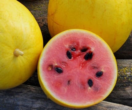 The yellow fruits weigh only 1 to 1.5 kg and contain red flesh with the typical aroma, but slightly less sweetness.