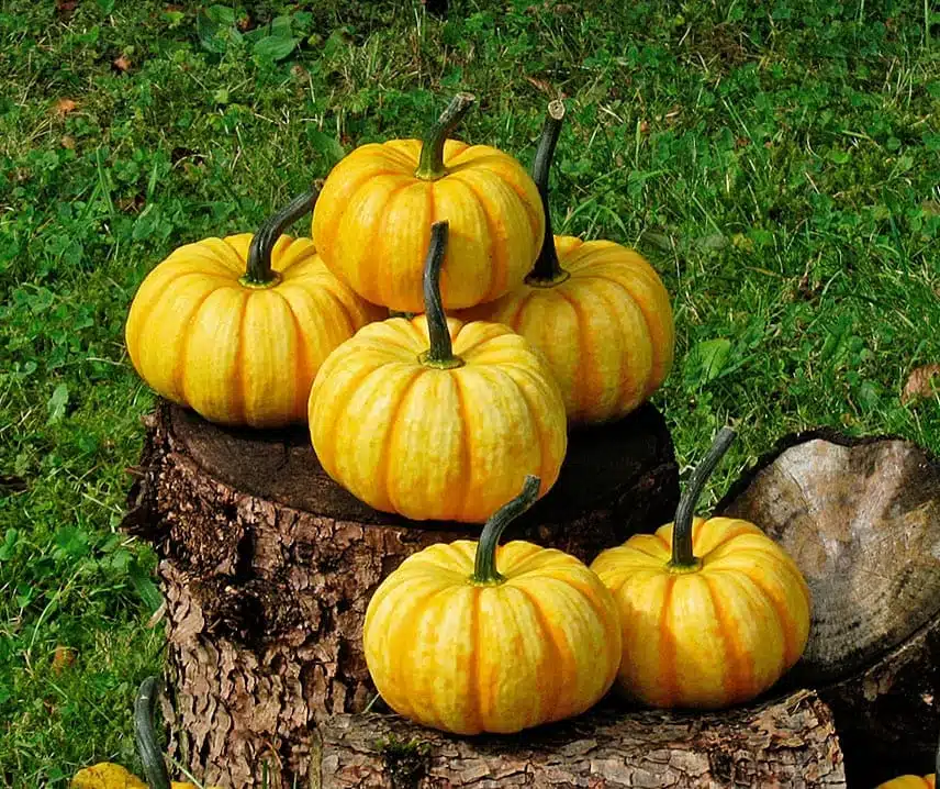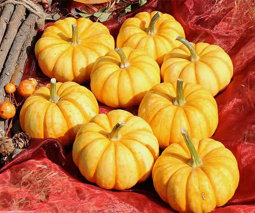 The beautiful warm color, the ribbed shape and the small size with a diameter of approximately 10 cm make this variety particularly suitable for decorative purposes.