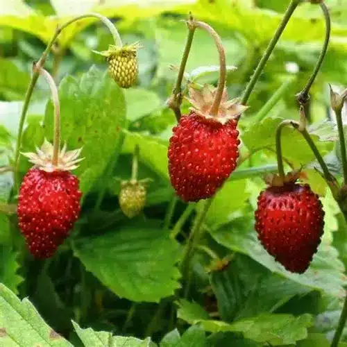 Alpine strawberry with intensely delicious fruits on beautiful, naturally bearing, compact plants without runners.