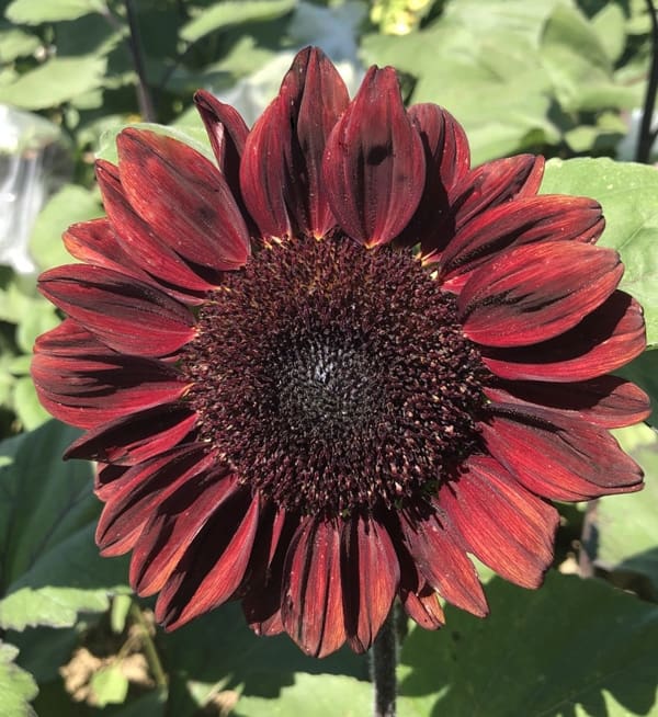 Helianthus ProCut® Red has a deep red, burgundy-coloured, pollen-free flower with a dark heart.