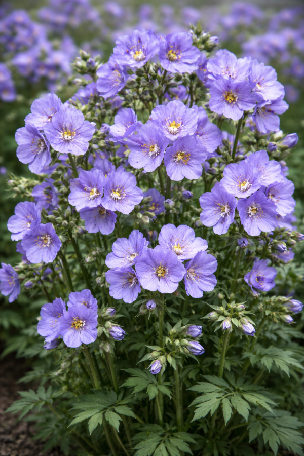 Its bushy growth and profuse flowering also make Polemonium 'Blue Pearl' ideal for pollinator-friendly gardens, as the flowers attract bees and butterflies.