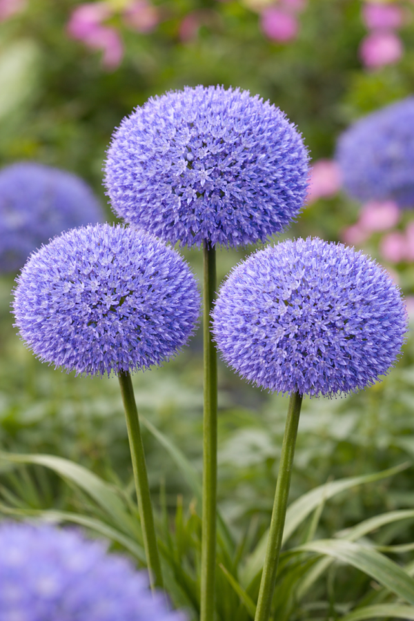 El Allium caeruleum combina a la perfección tanto con plantas de floración estival coloridas como con plantas perennes de hoja perenne. Considere combinaciones con: