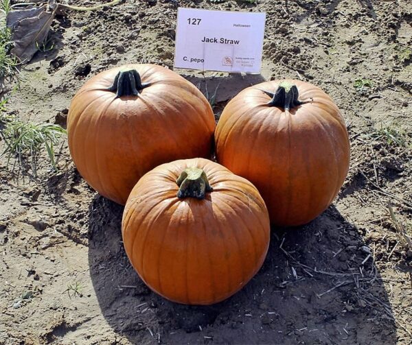 Jack Straw produce frutos redondos de unos 6-7 kg, de color naranja brillante y ligeramente acanalados, de redondos a ligeramente redondeados.